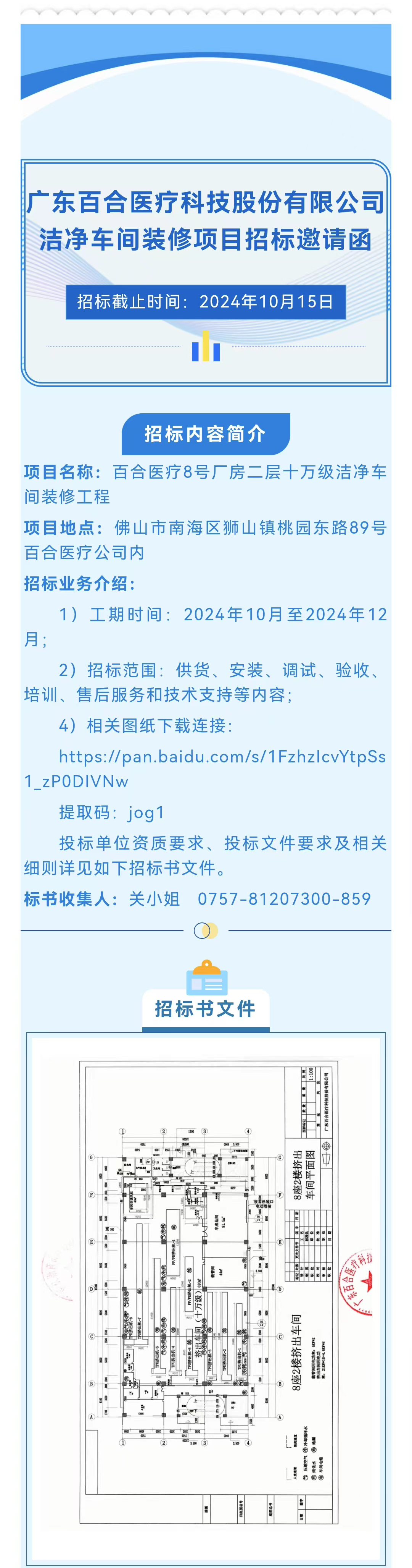 8號廠房二層十萬級潔凈車間裝修工程招標邀請函
