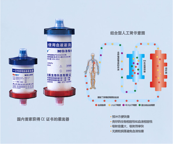 MG系列一次性使用血液灌流器(以下簡稱MG灌流器)聯(lián)合血液透析治療終末期腎?。‥SRD)。工作原理為吸附終末期腎?。‥SRD)患者體內(nèi)中大分子毒素和蛋白結(jié)合類毒素。